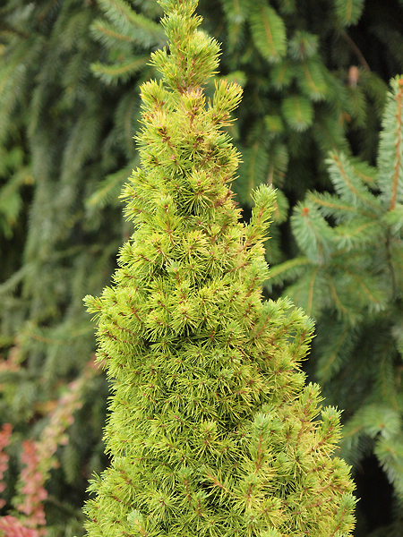 C 15. Karłowa, wolno rosnąca forma o regularnym, stożkowatym i gęstym pokroju i niespotykanej żółtomiedzianej zimowej barwie. Roślina rocznie przyrasta o 5-6 cm, osiągając po 10 latach uprawy około 1 m wysokości. Barwa igieł od wiosny do pierwszych mroźnych dni jest jasno zielona. W czasie, gdy jesienią temperatura spada w okolice zera stopni barwa igieł zmienia się na żółtomiedzianą i taka pozostaje do początku wiosny. W okresie Bożego Narodzenia może służyć za oryginalną choinkę.