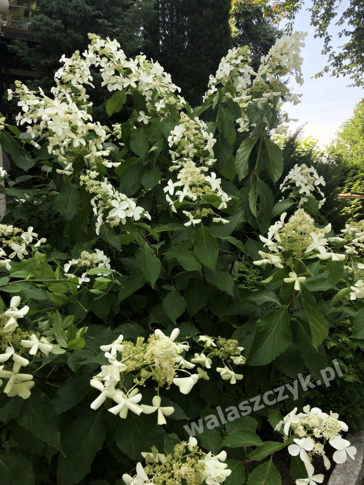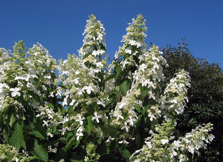 Kwiatostan bardzo duży, kwiaty płone. Rozwijające się kwiatostany mają zielonkawe szczyty, potem barwa kremowa. Kwitnie od połowy VII do X. Krzew o pokroju regularnym, dorasta do ok. 1.5 m, pędy proste ukośnie skierowane ku górze. Cena zawiera opłatę licencyją i etykietę.