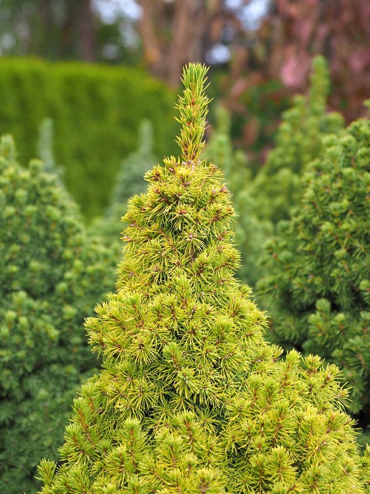 C5 ! Odmiana o zwartej kulistej formie i jasnozielonym wybarwieniu szczególnie w okresie wiosennym, wzrost wolny. W cenę rośliny wliczona jest opłata licencyjna oraz kolorowa etykieta.