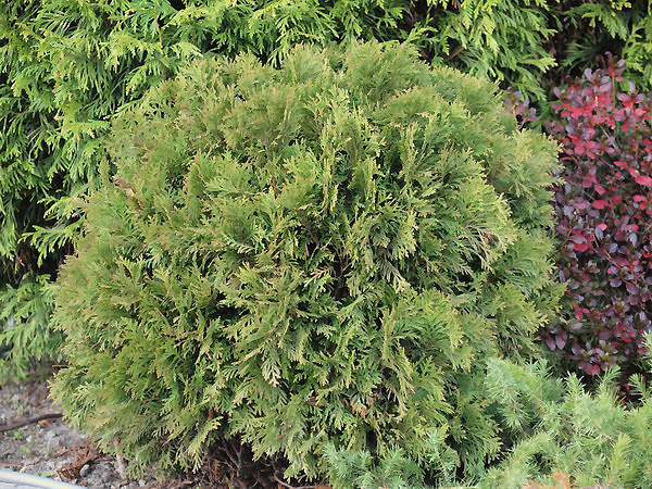 C5 ! Odmiana o zwartej kulistej formie i jasnozielonym wybarwieniu szczególnie w okresie wiosennym, wzrost wolny. W cenę rośliny wliczona jest opłata licencyjna oraz kolorowa etykieta.