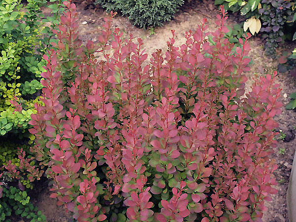 Roślina szczepiona. Odmiana o pokroju krzaczastym, nieregularnie szerokostożkowatym. Wzrost średnio wolny. Po 30 latach w odpowiednich warunkach mogą osiągać ok. 4-5 m wys. i 3 m szer. Na końcach pędów na wiosnę pojawiają się bardzo dekoracyjne niewielkie szyszki w czerwonym kolorze. Pojawiają się już na młodych roślinach. Igły błyszczące ciemnozielone i kłujące.