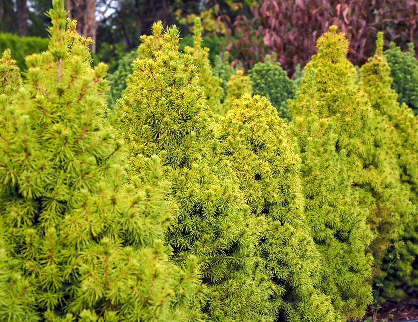 C 15. Karłowa, wolno rosnąca forma o regularnym, stożkowatym i gęstym pokroju i niespotykanej żółtomiedzianej zimowej barwie. Roślina rocznie przyrasta o 5-6 cm, osiągając po 10 latach uprawy około 1 m wysokości. Barwa igieł od wiosny do pierwszych mroźnych dni jest jasno zielona. W czasie, gdy jesienią temperatura spada w okolice zera stopni barwa igieł zmienia się na żółtomiedzianą i taka pozostaje do początku wiosny. W okresie Bożego Narodzenia może służyć za oryginalną choinkę.